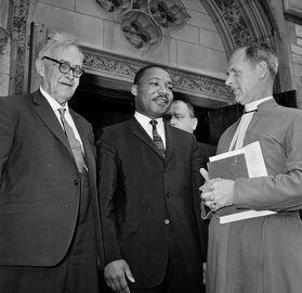 How will this home-court advantage work for the Princeton Barthians? Blooming Washington may have made an irresistible case for the analogy of being, but so does Princeton regarding this conference's ecumenical aim. Thomas and Calvin, you'll recall, are already in dialogue in the Princeton University Chapel - where Barth himself preached. There he is with MLK, but note the architecture. He's appropriately standing on the Chapel's south, Protestant, side (obviated by the south window's dedication to Bunyan's Pilgrim's Progress and Milton's Paradise Lost). Conversely, in the early twentieth century, long before ecumenism was fashionable, Princeton hosted the (once) famous Thomist, Cardinal Mercier, who is himself honored with his own window, appropriately placed on the north, Catholic side (indicated by Malory's Morte d'Arthur and Dante's Divine Comedy). Pace Jason Byassee's fine article on a crucial building, Princeton (you've tired of hearing me say) lays claim to one of (the?) finest ecumenical chapels in the world, making this town - following Princeton proposal precedent - an ideal venue for such discussions. And whereas Barth may have been here, Thomas is. An authenticated relic of Thomas Aquinas (a spinal fragment, I believe), safe in Catholic custody and awaiting the resurrection, won't be far from where the conference takes place.
